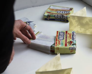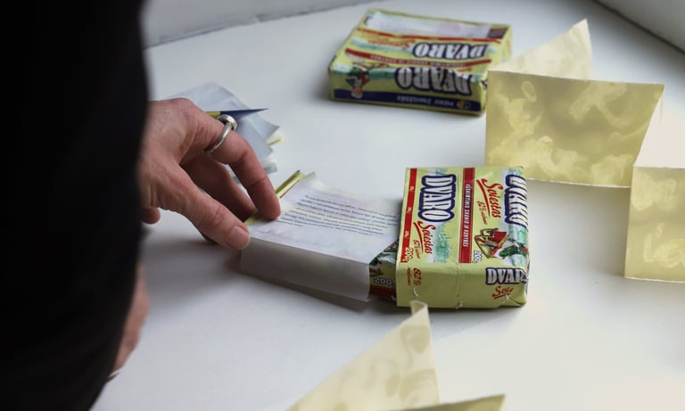Artist’s book, butter on paper, butter packaging, 7 × 84 cm, 2023