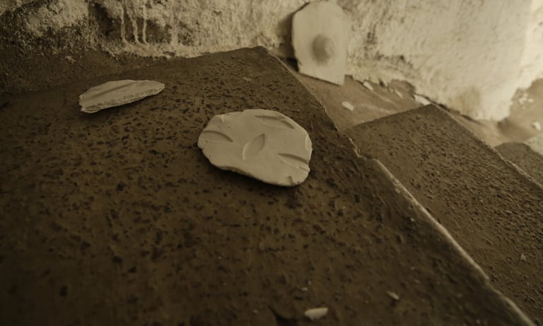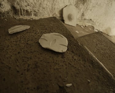 My creative process often revolves around a connection to the spaces I inhabit. Being away from home, I tried to familiarize myself with these new surroundings by observing and engaging with their surfaces. I began collecting imprints from my shared studio flat – the sink basin, radiator, window panels – and from the academy’s studio spaces: the winding metal stairs, lamps, and the cracks in the walls of the outdoor terrace.