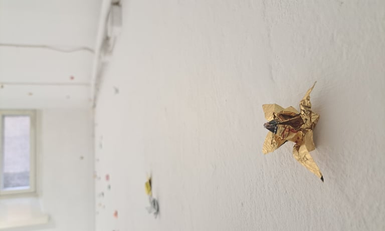 folded candy wrappers, site-specific installation, 2025
